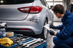 少しでも違和感があれば、引き渡し前に販売店や整備工場へ相談すると話が進めやすいです。洗車で強くこすったり、市販の補修材を急いで塗ったりすると、かえって状態確認がしにくくなることもあります。